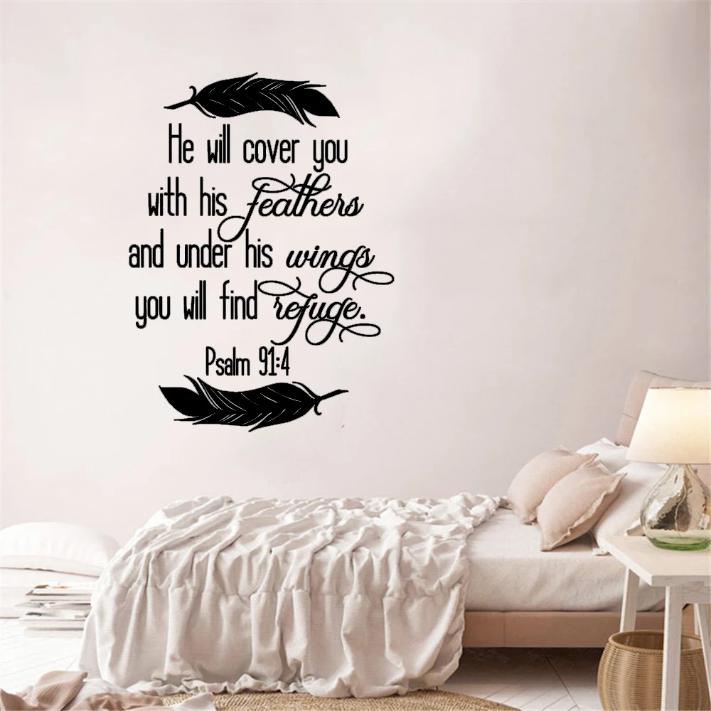 He Will Cover You With His Feathers Psalm 91 4 Scripture Wall Decal Christian Wall Decal Religious Bible Verse Wall Decor Wall Stickers Aliexpress